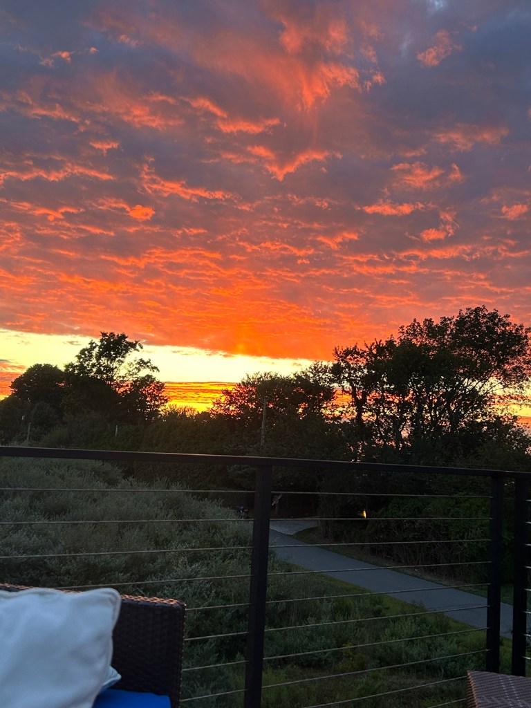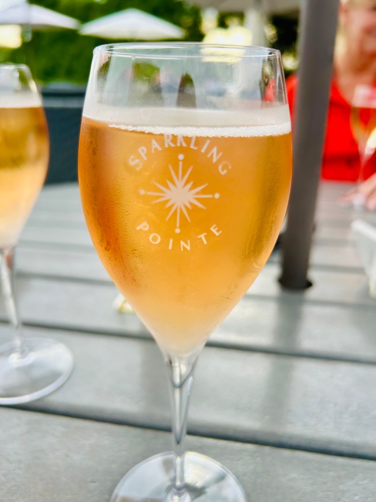 We wrapped the day at Sparkling Pointe, just in time for their final Fizz & Fry of the season — a playful pairing of sparkling wines with fried seafood. Think crispy wings, shrimp, fries, and bubbly. It was indulgent and fun, and the vineyard itself is stunning for photos. We capped the day with sunset views from my friends’ rooftop deck. And what a sunset it was — glowing pinks, oranges, and purples melting over the Sound.