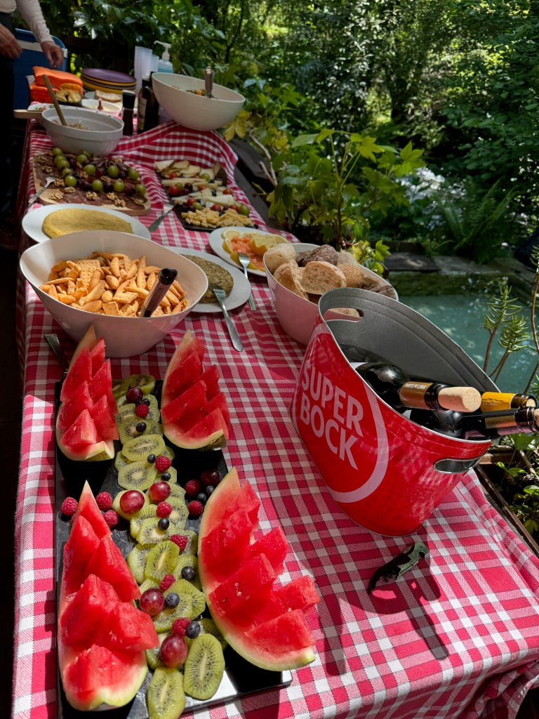 The next morning, after a hearty breakfast and a bit of instruction from our guides, we shuttled to the Trilho dos Canos de Água trailhead, close to the Romanesque-Byzantine inspired Basilica de Santa Luzia. We followed an old water trail from the mountain mines above the city of Viana do Castelo down to its historic center. We stopped for lunch at a private estate on a hillside overlooking the ocean and were treated to a tour of the grounds, private chapel, and famous landmarks by the current resident. The estate had passed down through generations and was originally gifted by a king to an ancestor who had captured a castle during a war. Pretty cool gift. It happened to be my cousin’s birthday, so a special lunch had been prearranged and was served inside an old stone outbuilding on the property. We enjoyed a rustic feast and celebrated my cousin’s special day.