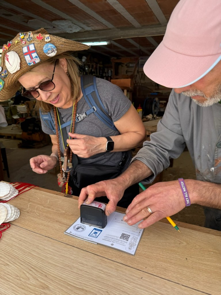 We had all been given “pilgrims passports”. The tradition of filling these booklets with stamps along the Camino dated back centuries. Each stamp design is unique, marking not just the distance but the soul of the place—churches, cafés, bakeries, even the occasional unsuspecting shopkeeper would pull out a rubber stamp from behind the counter. Today, you still need at least two stamps per day to prove you’ve completed the required 100 kilometers for the Compostela certificate at the journey’s end.